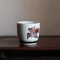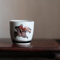 駆け抜ける2匹の馬(午)◆キュートな緑の雲。九谷焼 色絵金彩猪口 昭和レトロ 干支 酒器 コレクション 古民家 古道具 i5