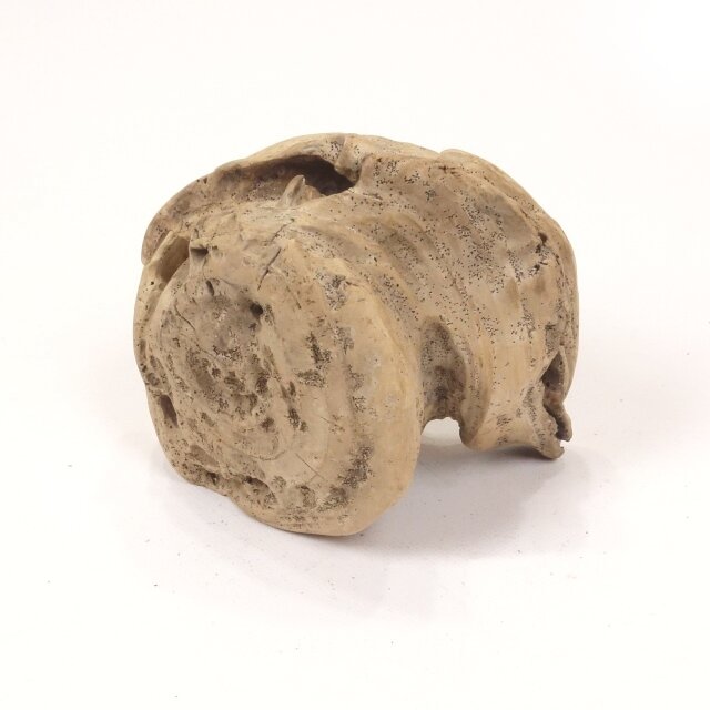 幹もしくは枝の輪切り丸太が流木となったもので、弱い部分が落ち、渦巻く車輪のような形状となっています。
