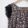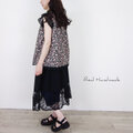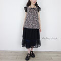 黒ベースに落ち着いた花柄、そして袖のチュールレース・・