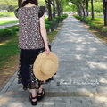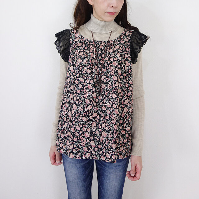 布の落ち感と花模様のリズムが、さりげなく女性らしさを引き立ててくれます。