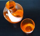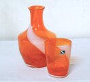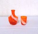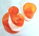 透明のオレンジに白の渦巻き模様が入った冠水瓶。