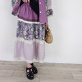 3種の異なる生地を重ねて仕立てた、彩り豊かなティアードスカートです。