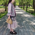 [セットアップ] 葡萄色リネンとアンティークローズの彩り羽織りブラウス(セットアップ対応)