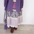 葡萄色リネンとアンティークローズの彩りティアードスカート(セットアップ対応)