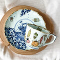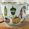❤️チコロット❤️すべて手描き❤️染付け❤️ソーサーは取り皿にもなる❤️カップ&ソーサー❤️野菜たちの戦略会議