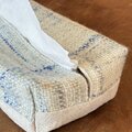 手紡ぎ糸の織地でつくったティッシュケース