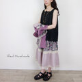 [セットアップ] 葡萄色リネンとアンティークローズの彩りティアードスカート(セットアップ対応)