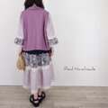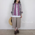 [予約販売] 葡萄色リネンとアンティークローズの彩り羽織りブラウス(セットアップ対応)