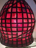 ステンドグラスのデザインでは長年、線にこだわって作品作りをして来ました。ランプシェードに、同じ放物線を描くことは、なかなか思うように出来なかった課題でありましたが、その方法を自身で発見し、作品に反映しています。