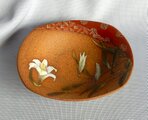 ■釉描彩ササユリ図赤絵盛器
