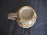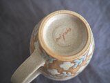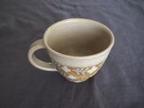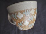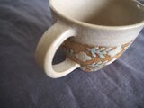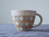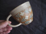 手仕事の温かみが感じられる、花模様の陶器マグカップです。