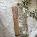 ★ハンドメイド★ ★★金沢 リネン生成り小花実刺繍扇子ケース★箸入れ★箸袋★