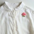 ブローチが下を向いてしまう場合は、服の内側にフェルトを入れ、フェルトとブローチでお洋服を挟むようにして留めて頂くと、見栄えがよくなります。