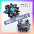32 日傘 ワンタッチオープン 着物リメイク 大島紬 コサージュ&ヘアゴム付き