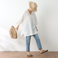 ゆったりとしたシルエットで、風通しよく、リラックス感のある快適な着心地です。