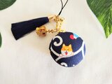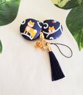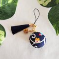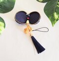 ネイビー色長タッセルとゴールド王冠チャーム付き