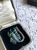イギリスのジュエリーメーカーBJLのポップなエメラルドグリーンの可愛いサソリのブローチ。