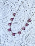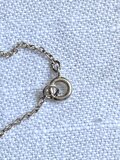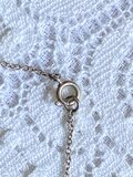 光が当たるとオープンバックのセッティングで光を取り込みファセット一つ一つが光を放ち、華奢でとても美しいネックレスです。
