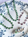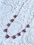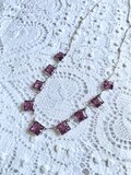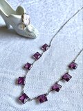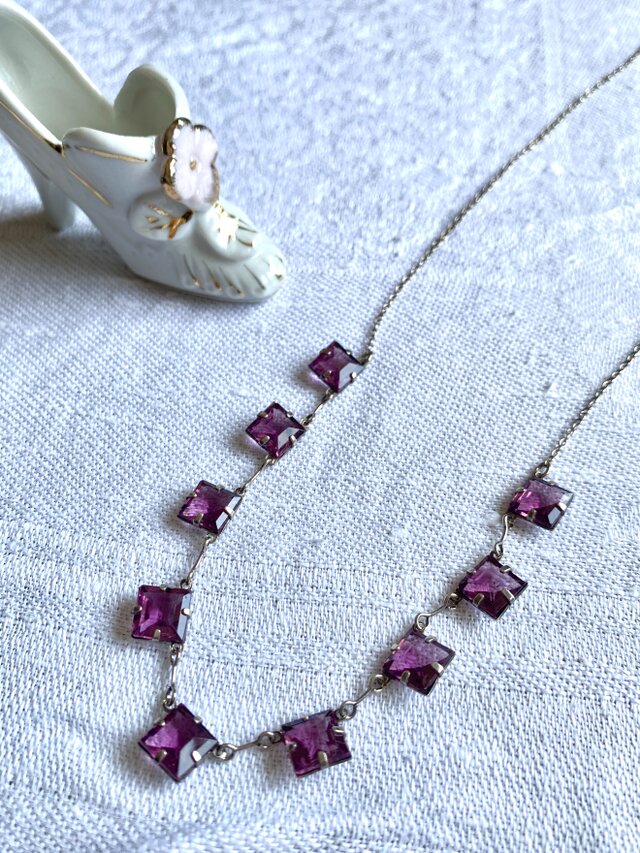 暗すぎず、明るすぎず優しい色合いのパープルのアールデコネックレス。