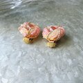 ピンクとクリアビーズをスクリューさせた、レトロなデザイン。