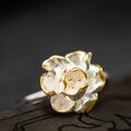 このリングは、繊細で優雅な牡丹の花を見事に再現し、クラフトマンシップの魅力が詰まっています。牡丹の花びらは、細部にまでこだわり、美しく表現されています。シルバーの輝きが花のデザインを引き立て、手元に華やかさを添えます。このリングは、特別な日のおしゃれなアクセサリーとしてはもちろん、日常の装いにも上品さを加える一品です。また、牡丹は幸運や富を象徴する花とも言われており、贈り物としても喜ばれることでしょう。