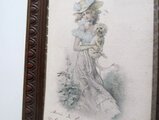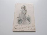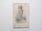 貴婦人が犬を抱いた繊細で上品なイラストポストカードです。