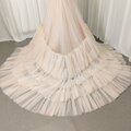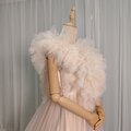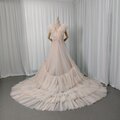 カラードレス 薄シャンパン色 Vネック リボントレーン プリンセスライン 花嫁