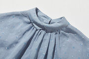 ★襟元にはギャザーがあしらわれ、顔周りが華やかになる設計。
