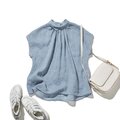★後ろのボタンを少し開けてワンピースなどとレイヤードするのもおすすめです。
