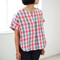 赤・青・白の軽やかな配色のブロックチェックとゆったりシルエットが季節をまたいで活躍します。