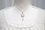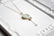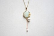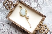 レジンアート スライスアゲートとコットンパールのペンダント〈始まりの鐘〉
