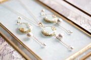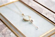 大小二粒のコットンパールを吊るして、高級感に可憐さを添えたアクセサリーに仕上げました。