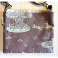 夜空の遊園地、メリーゴーランド柄のサコッシュです。精緻で素敵な絵ですね。
