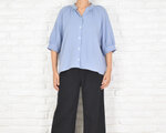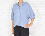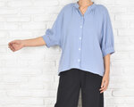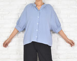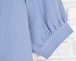 シンプルなコットンダブルガーゼふんわり袖のスキッパーブラウス サックスブルー