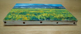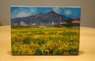 筑波でスケッチした風景画です。菜の花畑と奥にそびえ立つ筑波山のコントラストが海辺に住む私に新鮮にうつり、作品にしました。