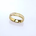 整然と並べられたダイヤモンドと彫金細工で装飾したハーフエタニティリングです。