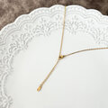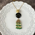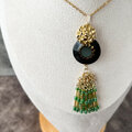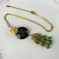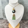 ビーズのタッセルがついたWボタンネックレス チェーンはサージカルステンレス