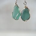 小さな空色、海色のシーグラスが耳元で