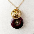 和の雰囲気漂う赤X黒のボタンとメタルボタンを組み合わせたトッ