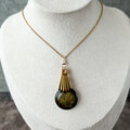 マドレーヌ型のパーツとボタンのネックレス チェーンはサージカルステンレス