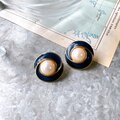ぷっくりとしたパールの周りを、緩やかに螺旋させたネイビーのペイント。細いゴールドトーンのラインが上品なアクセントとして映えます。