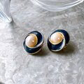 Y1111-ヴィンテージイヤリング U.S.A. 70〜80s Gold Tone Faux Pearl Navy Paint
