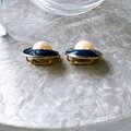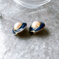 ゴールドトーンをベースに、ネイビーエナメルペイント、フェイクパールのクリップイヤリング。