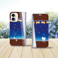 柴犬シルエットデザイン(星空バージョン)の帯なしiPhone手帳型スマホケースです。