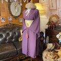 【色無地 着物 セミロング ワンピース ドレス ハンドメイド リメイク 重ね衿 襟 帯サッシュベルト 帯バッスル 和洋折衷 洗える 化繊 レトロ 古着 気品漂う古代紫の色無地 KWS-25 みずたま畑のプレミアムお着物セット】
