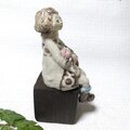 衣装や果実や葉や花の一部分には薄く透明釉を施しているので、その部分は少し光沢があります。