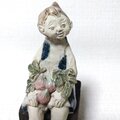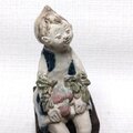 衣装や果実や葉や花の一部分には薄く透明釉を施しているので、その部分は少し光沢があります。