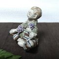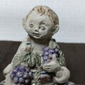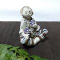 衣装や果実や葉や花の一部分には薄く透明釉を施しているので、その部分は少し光沢があります。