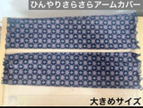 大きめひんやりさらさら自然にフィットするネイビー&エンブレム模様柄アームカバー一対、ポリエステル素材
