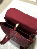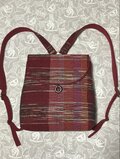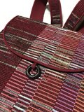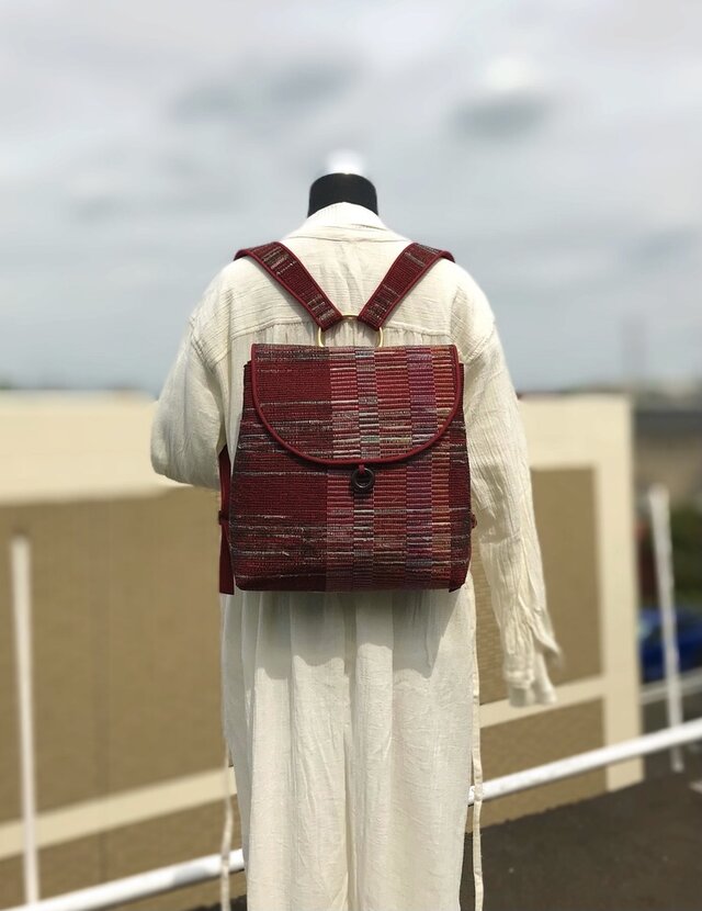 しっかりした裂き織りの被せ蓋付きリュック(赤)